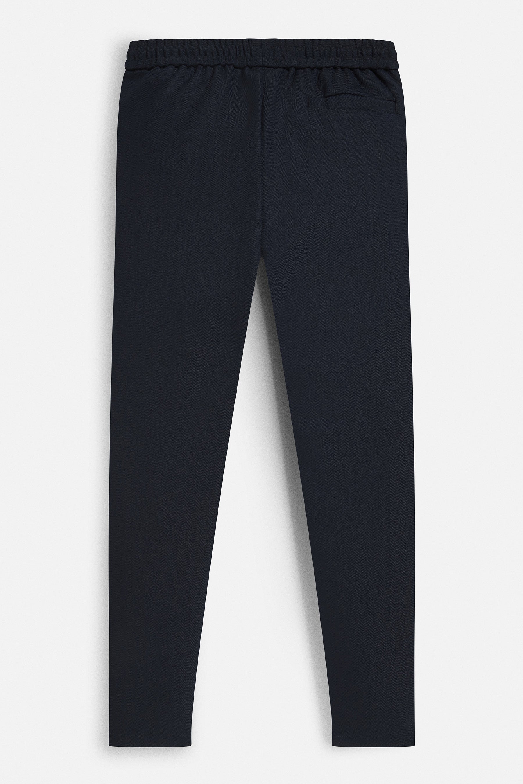 - Textured Herringbone pattern fabric with a slight stretch for a comfortable fit